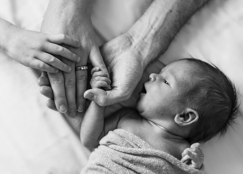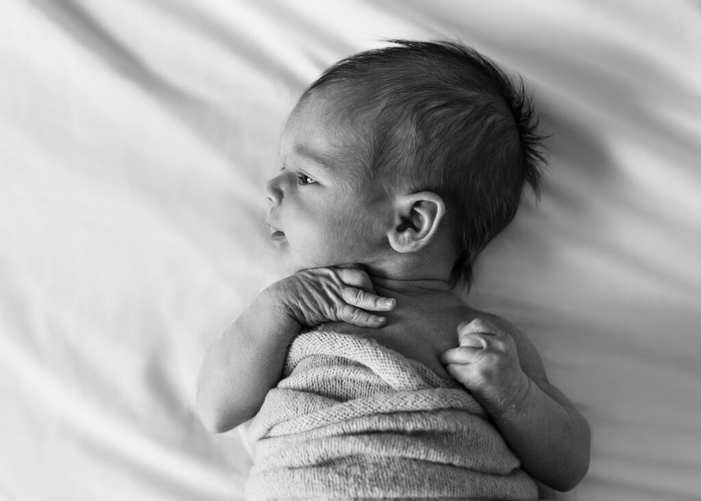 Of course, beautiful individual portraits are still a must, as those precious newborn features are all too fleeting! But for me, natural elegance and simplicity are the key ingredients. A natural pose and wearing a simple wrap or vest is all that’s needed. Babies are so pure, perfect and beautiful, just exactly as they are. No elaborate props, outfits or poses necessary!