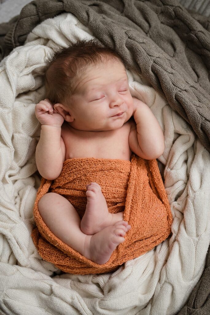 Back when I first started on my journey as a newborn photographer, I thought this was the way that you “had to” photograph a newborn in a professional capacity. I was on my first maternity leave and I started learning in earnest everything there was to know about the art of newborn photography, as prescribed by the industry. Through a mix of in-person workshops, online courses and the university of YouTube, I learned everything I could about how to soothe a baby to sleep, how to wrap a baby, how to pose a baby – and all the “necessary” props, i.e. buckets, baskets, backdrops, outfits, hats, hairbands, you name it. I really thought this was the only way a professional should do it.